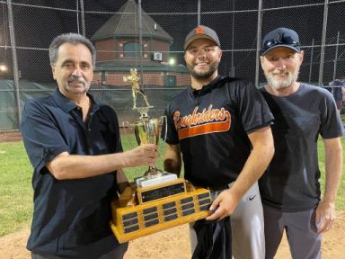 Thomas Gosse' is presented with the Carter Cup by Commissioner Angelo Marchiano (left) and League Coordinator